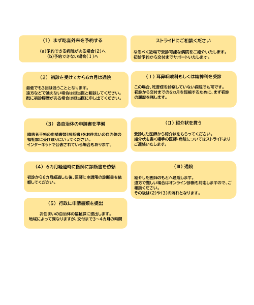- 診断書を取るには初診日から6カ月後に診察を受け、診断書を依頼する必要があること。
