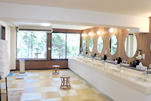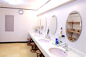 明るい洗面台をご用意いたしております。浴室のご使用後や、お化粧、お着替えにご利用ください。