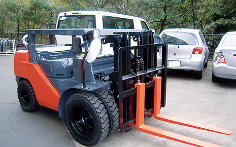 天井の低いところで使うフォークリフトを製作。シートをサイドに変更し、車体を低く抑える改造をしました。