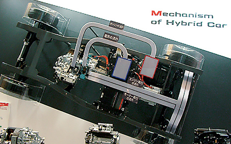 ハイブリットカーの動力構造の展示パネルを製作しました。