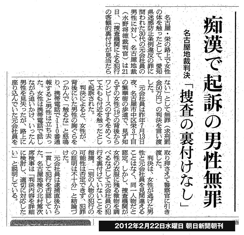 ※ 当事務所の所属弁護士が痴漢事件で無罪判決を獲得しました。(2012年2月現在)→朝日新聞記事
