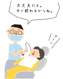 残念ながら、むし歯になってしまった時は歯の治療を行いますが、痛くない治療を心がけ、お子様に「歯医者さんは怖くないよ」と感じて帰っていただけるようにしています。
