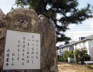 伊勢物語の中で、かきつばたを観賞した在原業平が松の木の下で句を詠んだと伝えられる。