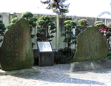 東海道松並木には、かつて開かれていた「馬市」の跡を記した碑が立っている。