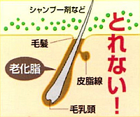シャンプーなどで表面の汚れはとれますが、毛根の深部の老化脂はなかなかとれません。