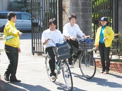 学校の担当者は生徒指導主事です(写真:交通安全指導の様子)
