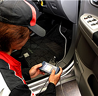 最近では自動車をコンピュータで制御するために、車全体にセンサーや電装品が使われおり、それらの故障にも対応できる専用のコンピューターテスター(診断機)を導入しています。